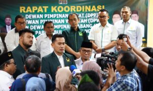 PEKANBARU, Nusantara Madani – DPW Partai Bulan Bintang (PBB) Provinsi Riau menggelar rapat konsolidasi internal bersama seluruh jajaran pengurus dan DPC PBB 12 kabupaten dan kota se Riau dan langsung dihadiri jajaran pengurus DPP, Ketua DPP PBB Gugum Ridho Putra SH MH, Sekjen Yuri Kemal Fadlullah Mahendra SH MH, Bendum Ali Reza Mahendra SH, Ketua Dewan Syuro Muhammad Saltut MA bersama rombongan di Hotel Alpha Pekanbaru, Selasa (27/1/2026).